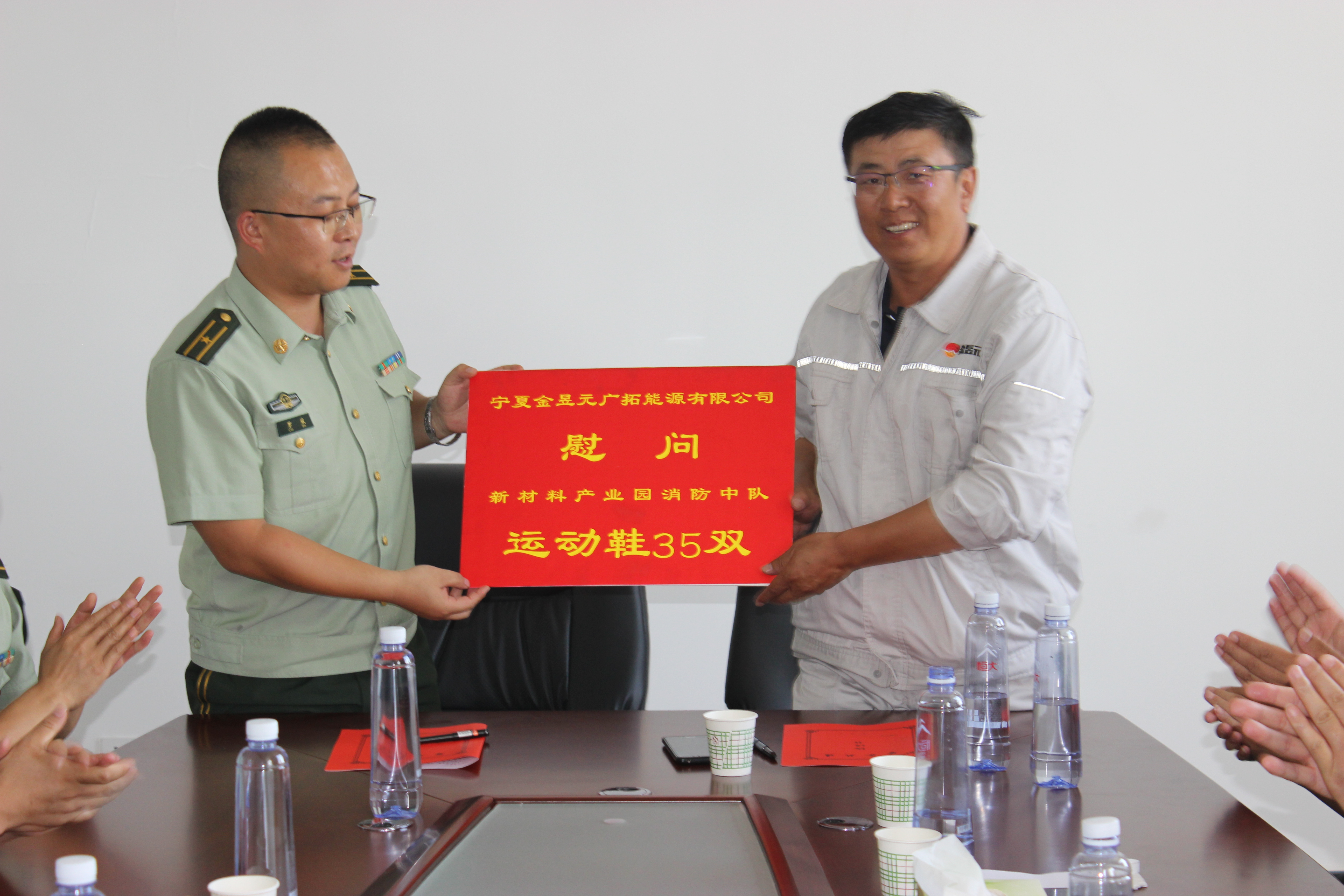 2018年7月26日,在“八一”建軍節(jié)即將來臨之際,我公司組織對共建單位----固原市消防支隊開發(fā)區(qū)大隊進(jìn)行慰問并簽訂警企共建協(xié)議書。同時與開發(fā)區(qū)大隊聯(lián)合舉辦了一場以“警民魚水情,共譜和諧曲”為主題的七彩夏日——慶“八一”警民聯(lián)歡會,熱烈慶祝中國人民解放軍建軍91周年,共敘軍民魚水深情。