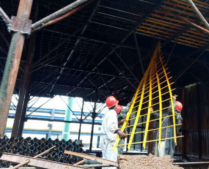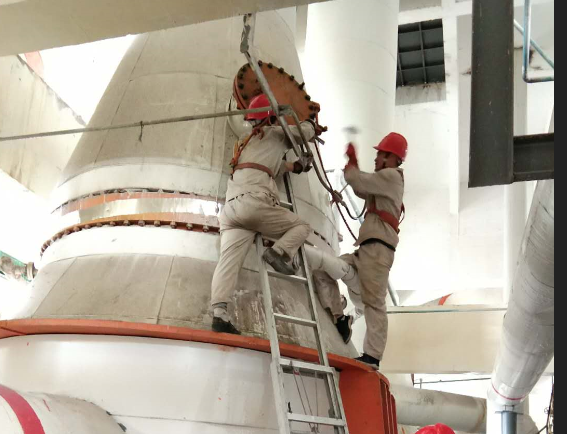 無論自身如何泥水相伴,冷卻塔上下的檢修人員你拆我接,你接我送,緊張有序、團結一致地進行著大面積的填料拆取、塔桿更換工作。
