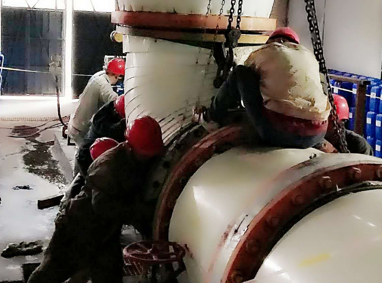 各效體刷洗、水封桶漏點補焊、高空管道等各個漏點的檢查、修復、設備零件的更換,檢修現(xiàn)場處處都是檢修人員全力奮戰(zhàn)的身影。