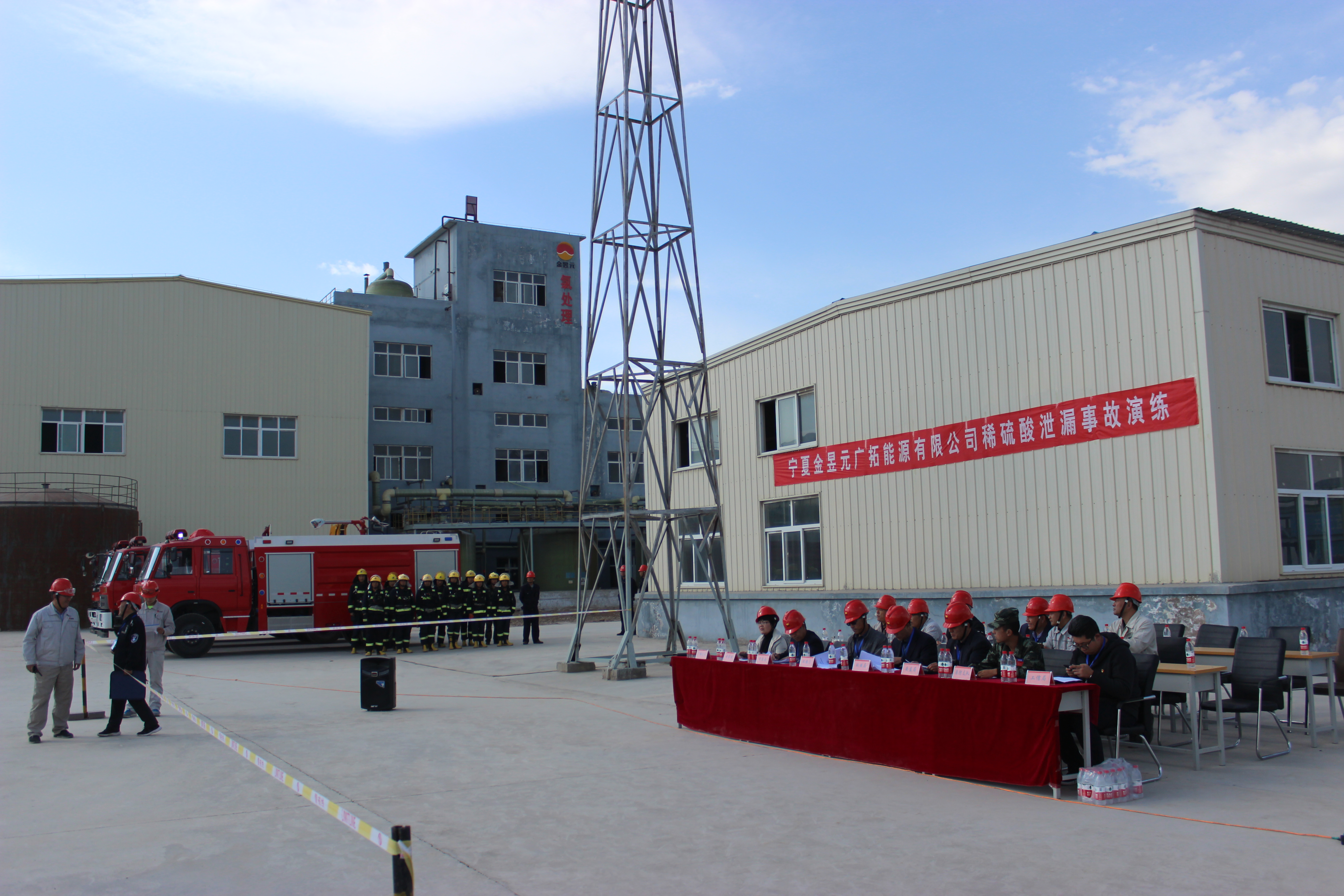自治區(qū)環(huán)保廳、固原市環(huán)保局、開發(fā)區(qū)管委會、工信局、安監(jiān)局、消防支隊(duì)等相關(guān)單位領(lǐng)導(dǎo)到現(xiàn)場觀摩。集團(tuán)公司副總裁栗學(xué)信,片區(qū)總經(jīng)理喬冠榮等公司領(lǐng)導(dǎo)及部分管理人員和來自一線職工共計100余人參加了此次演練。