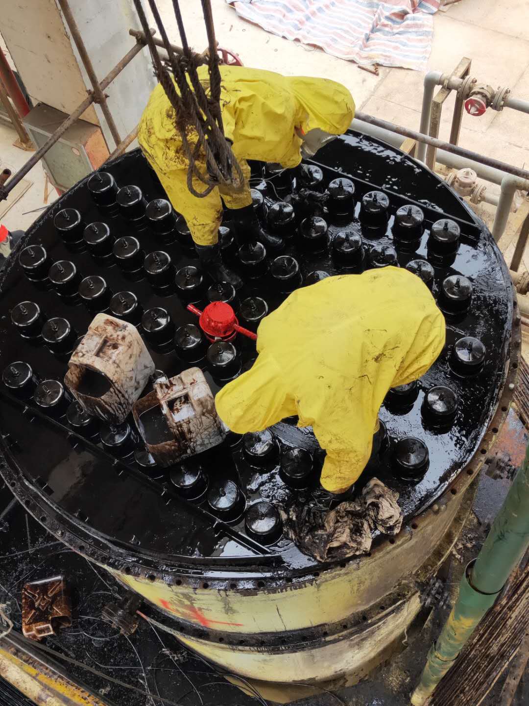 檢修現(xiàn)場(chǎng),新員工在摸索中不斷前進(jìn)大膽嘗試,在師傅的帶領(lǐng)下提高自身技能,相信這次檢修作業(yè)中他們會(huì)學(xué)到更多!在檢修期間,各裝置區(qū)對(duì)于施工現(xiàn)場(chǎng)布置可謂井井有條,忙而不亂,新員工協(xié)助老師傅開(kāi)展工作,現(xiàn)場(chǎng)各類工量器具擺放整齊,信手拈來(lái)游刃有余,新舊棉紗分類,清洗油和廢油各有專用容器盛放,為快速、安全、高質(zhì)量檢修提供了有力保障。