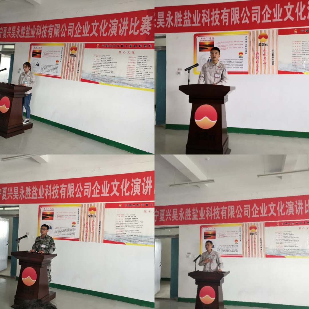 2019年5月30日,寧夏興昊永勝鹽業(yè)科技有限公司舉辦“提升職業(yè)化素養(yǎng)”主題演講比賽。鹽業(yè)公司總經(jīng)理尚繼榮、副經(jīng)理莊濤、綜合科科長張偉、安環(huán)生產(chǎn)科科長岳尚華及50余名員工代表參加。同時,還特邀片區(qū)副總經(jīng)理馬建東、黨支部副書記王志杰出席活動。