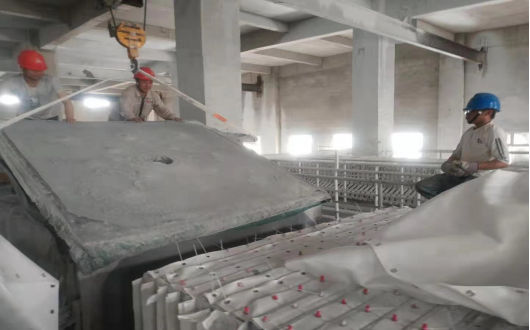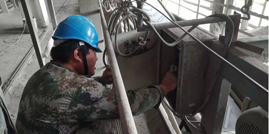 穿過馬路,步入公司核心生產(chǎn)區(qū)域。在生料裝置各個現(xiàn)場,1#號濃縮池底安裝渣漿泵,1#-16#刮板機(jī)下料口技改、堆料機(jī)1502皮帶硫化、循環(huán)風(fēng)機(jī)、尾排風(fēng)機(jī)、V選、混料機(jī)、輥壓機(jī)檢修的完成以及1102皮帶托輥檢查及軸承潤滑的進(jìn)行。此時,在酷暑下,一個個精神充沛的工友們頂著烈日的酷曬,正聚精會神的進(jìn)行著檢修作業(yè),他一只手扶著設(shè)備,一只手使勁的搬動著板子,那動作仿佛撫摸初生嬰兒的笑臉,那種眼神好似在說:孩子,你快成型了,等你成型組裝后,就會被帶動其他設(shè)備和諧運(yùn)轉(zhuǎn)。他們是設(shè)備正常運(yùn)轉(zhuǎn)的一個個信使,傳遞著安全生產(chǎn),減輕勞動強(qiáng)度,促進(jìn)人們對公司健康發(fā)展的美好祝愿。
