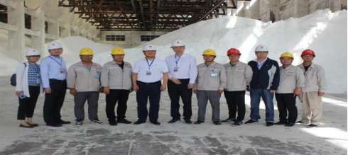 白鴻一行先后到興昊永勝鹽業(yè)公司鹽庫、鹽銷裝置、熱力裝置、企業(yè)文化展廳等地進行實地調(diào)研,并在鹽庫進行了合影留念。