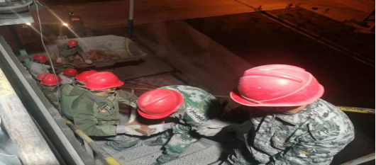 公司總經理吳紅衛(wèi)、副總經理梁軍分別在回轉窯現場,對回轉窯耐火磚挖補進行指導,對挖補工序、清理狀況和人員搭配進行調整和部署,與此同時,經過連續(xù)14個小時的加班加點,16日晚23時40分許回轉窯耐火磚挖補順利竣工;17日凌晨3時許回轉窯窯口澆筑料填補完工,17日下午17時回轉窯窯尾預熱器檢維修及密封完工,17日下午17時30分回轉窯點火烘窯,18日上午7時10分正式投料,恢復生產。至此,回轉窯從停窯降溫到檢維修完成,比預計時間提前9個小時。