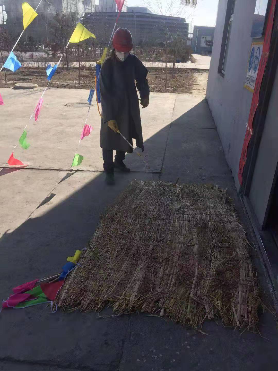 8、各裝置、科每日分別于8-9時(shí)、14-15時(shí)、20-21時(shí)對(duì)辦公區(qū)域、主控室、值班室、操作場(chǎng)所、生產(chǎn)廠房等區(qū)域進(jìn)行消毒工作,并做好相關(guān)記錄。熱力裝置負(fù)責(zé)對(duì)進(jìn)入煤場(chǎng)路口鋪設(shè)草簾或棉質(zhì)墊子,安排人員每隔二小時(shí)向上噴灑消毒水,鹽硝裝置在小廣場(chǎng)護(hù)欄間路口鋪設(shè)草簾或棉質(zhì)墊子,安排人員每隔二小時(shí)向上噴灑消毒水,對(duì)進(jìn)廠車(chē)輛輪胎進(jìn)行消毒。