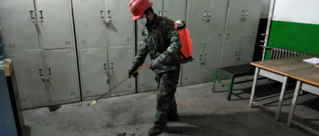 在宿舍,檢查留宿人員、進行衛(wèi)生消毒等“疫情”防控工作。