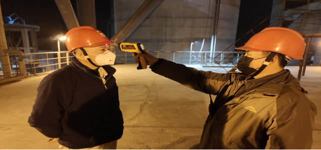 在園區(qū)南門,今日截止下午17時(shí)整,他們檢測、消毒、登記車輛92輛(其中水泥19車輛,熟料9車輛,2輛氧氣配送車),人員98人信息,體溫均在正常范圍,另外隨行26人體溫均在正常范圍。
