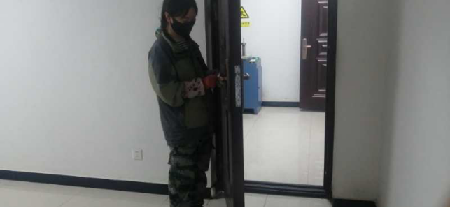 擦拭操作臺、門把手,工作的有條不紊。