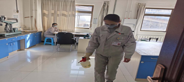 在崗位辦公室消毒。