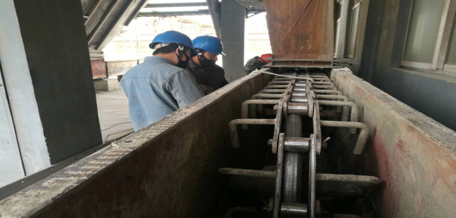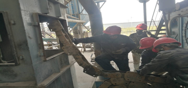 在窯頭收塵器拉鏈機(jī),他們及時(shí)拆卸拉鏈進(jìn)行更換,校正拉鏈平衡度。整個(gè)過程緊張有序,忙而不亂。無論是公司領(lǐng)導(dǎo)還是一線職工,大家都全身心投入到檢修戰(zhàn)役中。