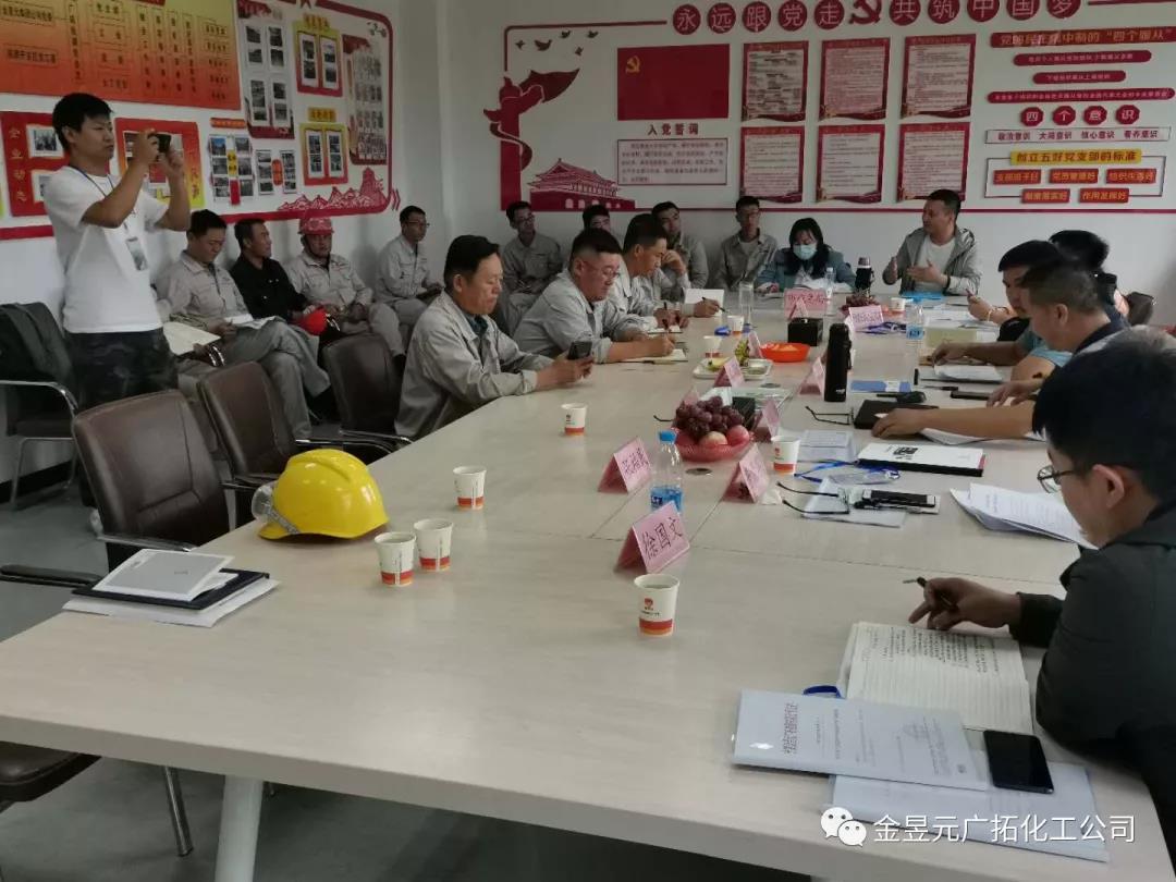 2020年8月20日下午,固原市應急管理局攜安全生產標準化達標考評組對我公司三級安全生產標準化創(chuàng)建工作進行評審,集團公司安環(huán)總監(jiān)栗學信、固原片區(qū)副總經理湯洪冰、化工公司總經理賈存富陪同接受評審工作。