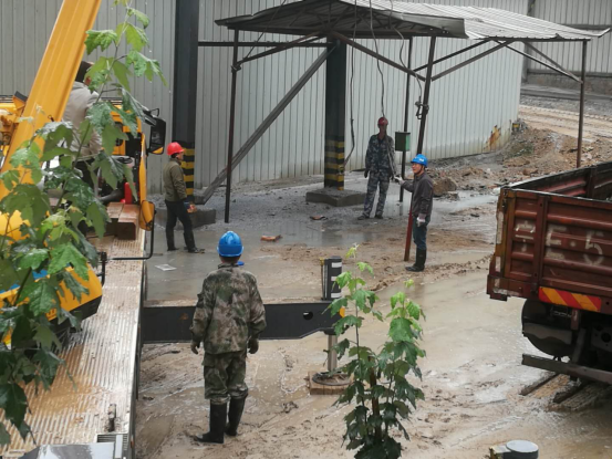 安裝窯頭排風(fēng)機(jī)、窯尾高溫風(fēng)機(jī),電儀裝置裝置長(zhǎng)王波更是以身作則,風(fēng)雨中依然親臨現(xiàn)場(chǎng),親自帶兵指揮,合理地調(diào)動(dòng)安排工作。