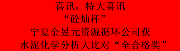 喜訊。幭慕痍旁Y源循環(huán)公司榮獲“砼燦杯”全國(guó)第十七次水泥化學(xué)分析大比對(duì)“全合格獎(jiǎng)”