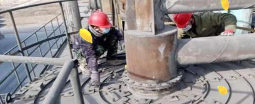 2月4日,組織人員對(duì)電石爐四層地坪與料管處漏洞利用澆注料進(jìn)行密封,并預(yù)留出吊裝孔。