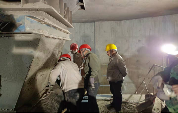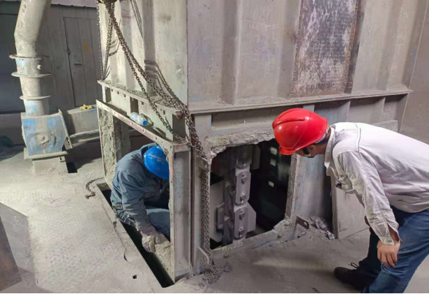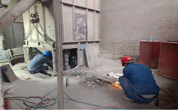 水泥磨檢查更換隔倉(cāng)板、堆焊輥壓機(jī)輥面,技改v選入口分料裝置、調(diào)整v選揚(yáng)料板、穩(wěn)料倉(cāng),裝置長(zhǎng)要求維修班全體人員在確保人員安全的前提下務(wù)必按時(shí)完成所有檢修項(xiàng)目,并調(diào)試運(yùn)行。雖然此次搶修任務(wù)時(shí)間緊迫,但安全永遠(yuǎn)是排在第一位。在工作前,按照屬地管理原則,層層對(duì)檢修作業(yè)人員進(jìn)行安全技術(shù)交底,要求檢修人員臨邊作業(yè)時(shí)必須要戴好安全帶,帶好耳塞和口罩,每位作業(yè)人員進(jìn)行危險(xiǎn)源辨識(shí)完成后才能進(jìn)行作業(yè)