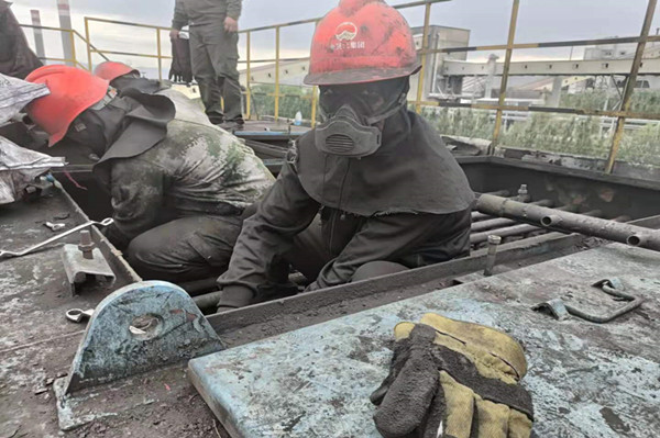 滿面的灰塵,擋不住他們前進(jìn)的腳步;滿眼的疲憊,擋不住他們對(duì)工作的認(rèn)真負(fù)責(zé);一雙雙沾滿油污的雙手、一身身掛滿油漬的衣服,都訴說(shuō)著他們對(duì)工作的無(wú)私奉獻(xiàn)。還記得在蘭炭除塵器布袋著火時(shí),他們加班加點(diǎn)的更換布袋,在最后大家一起吃飯的時(shí)候,你笑笑我,我笑笑你。因?yàn)樗麄冎挥醒例X是白的,其他地方都是黑乎乎的一片。蘭炭烘干爐大檢修時(shí),時(shí)間緊任務(wù)重,他們時(shí)常穿著隔熱服到里面進(jìn)行工作,當(dāng)看到他們出來(lái)時(shí),已經(jīng)是滿頭大汗,衣服早已濕透。寒冷的冬夜,當(dāng)設(shè)備出現(xiàn)故障時(shí),他們爬出溫暖的被窩早已成了習(xí)慣,為了穩(wěn)定生產(chǎn)需要,他們必須往前沖,以最快的速度去縮短故障的時(shí)間;酷暑的夏天,他們頂著高溫在哪里一點(diǎn)一滴補(bǔ)漏著缺陷;漆黑冷雨殘?jiān)露鴼w,這都已成為了常事。但就是有了這份對(duì)工作的無(wú)私付出,我們的生產(chǎn)才得到了保障。