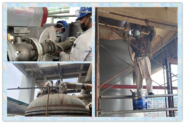 夏日炎炎,維修人員在高溫下對設備進行檢修,不怕苦不怕累,裝置及時提供飲用水,防止人員在檢修的過程中發(fā)生中暑,同時及時的完成工作任務,保障生產運行正常。在檢修中,堅持安全第一,揮灑汗水,關鍵時刻義無反顧,挺身而出,困難面前,毫無退卻,只為檢修工作安全。