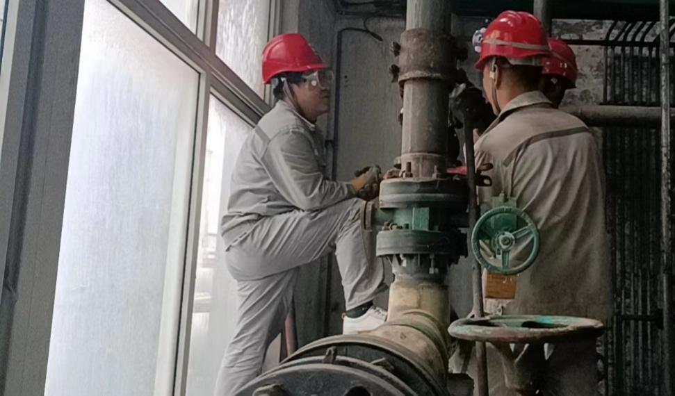 電解新員工也奮斗在一線,全力以赴,協(xié)助維修工更換閥門的他們刻苦認真,換好之后不忘仔細檢查。終于,工夫不負有心人,待裝置負責人檢查完之后,試用了一會那是一滴不漏。