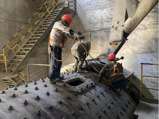 目前,已經(jīng)完成了3401提升機,更換頭部齒圈,料斗,組合選粉機、O-sepa選粉機、檢查軸承座、葉輪、聯(lián)軸器(更換磨損的尼龍棒),選粉機所有空氣斜槽更換透氣布,水泥磨更換一倉襯板和2823皮帶減速機更換油封、潤滑油等多個重點項目。