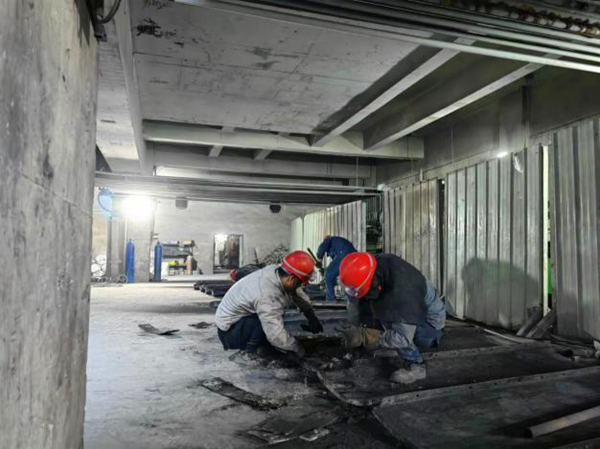 循聲望去,電石爐檢修現(xiàn)場,一群維修工正在對關鍵設備進行著精心策劃的“手術”。他們穿梭在檢修現(xiàn)場,彎著腰、埋著頭仔細檢查每一個部件,認真排查可能存在的隱患問題,就像是一位位守護裝置穩(wěn)定運行的“設備醫(yī)生”。