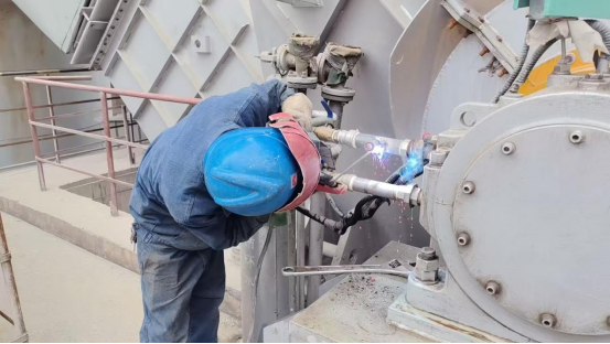 隨著一聲清脆的哨響,檢修工作正式拉開帷幕。焊工老李戴著防護(hù)面罩,手持焊槍,在水泥磨的縫隙間穿梭。弧光閃爍,焊花飛濺,如同一朵朵金色的煙花在黑暗中綻放,他全神貫注地修補(bǔ)著磨體上的裂痕,每一個(gè)焊點(diǎn)都凝結(jié)著他的精湛技藝;鉗工師傅們則圍著球磨機(jī),像一群經(jīng)驗(yàn)豐富的“外科醫(yī)生”,小心翼翼地拆卸下磨損的部件。扳手與螺栓碰撞發(fā)出的叮當(dāng)聲,與拆卸設(shè)備時(shí)的摩擦聲交織在一起,奏響了一曲獨(dú)特的工業(yè)樂章。