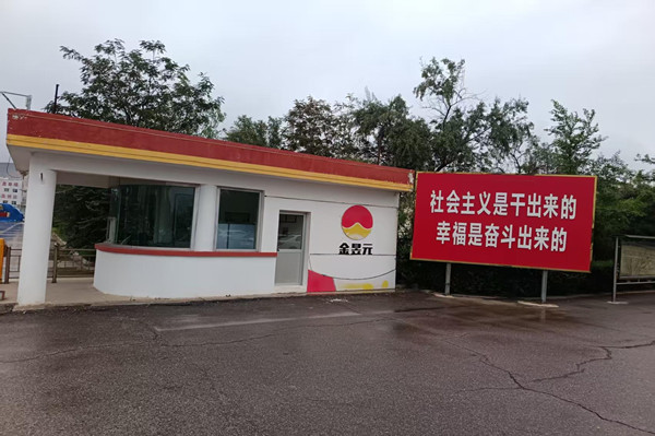 標語牌旁,一座白墻紅頂的門房靜靜佇立,墻上的“金昱元”標志在燈光下泛著溫潤的光澤,像一枚沉靜的徽章,見證著這家能源化學有限公司里無數奮斗的故事。此刻,板房里的燈還亮著,窗玻璃上隱約映出值班人員伏案的身影。筆尖在報表上沙沙游走,與遠處車間里機器的轟鳴交織,譜成一支獨特的夜曲。
