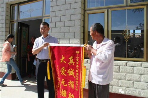 隨后,寧夏軍分區(qū)、青銅峽市人武部、金昱元公司代表來到了位于青銅峽市陳袁灘鎮(zhèn)唐灘村由青銅峽市人武部援建、金昱元公司捐助全套家具和家電的馬光祖家里,看望慰問了馬光祖家人,詳細詢問他們的健康狀況,了解他們生活上的困難,與他們親切交談,鼓勵他們要堅定信心,好好保重身體,度過幸福安詳?shù)耐砟辍?