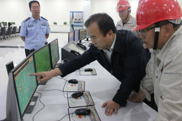劉市長一行來到化工中控室,詳細(xì)詢問工作人員值班、中控臺控制操作、巡檢等情況。集團(tuán)公司副總裁、總經(jīng)理喬冠榮就公司生產(chǎn)經(jīng)營、安全環(huán)保、隱患排查等方面工作做了詳細(xì)匯報,并就劉市長提出的相關(guān)問題一一作了解答。