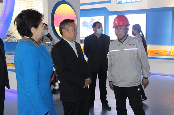 4 月 23 日下午,自治區(qū)政協(xié)副主席王紫云一行在固原市政協(xié)主席馬玉芳陪同下,蒞臨固原片區(qū)調(diào)研。集團(tuán)公司副總裁兼固原片區(qū)總經(jīng)理喬冠榮、廣拓化工公司總經(jīng)理賈存富陪同。