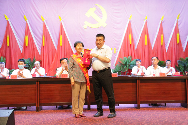集團公司董事長代良云為具有50年黨齡的老黨員頒發(fā)獎章,感謝她們充分發(fā)揮黨員模范帶頭作用,幾十年如一日對企業(yè)做出無私的奉獻。