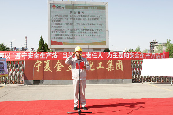 今年6月份是全國第21個“安全生產(chǎn)月”。今年的活動主題是“遵守安全生產(chǎn)法,當(dāng)好第一責(zé)任人”。6月1日,寧夏金昱元化工集團(tuán)股份有限公司分別在青銅峽片區(qū)和固原片區(qū)舉行“安全生產(chǎn)月”活動啟動儀式。
