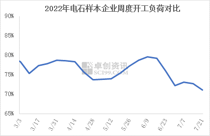 本周電石平均開工負(fù)荷繼續(xù)下降,截至本周四,電石行業(yè)周度平均開工負(fù)荷率在71.03%,環(huán)比上周下跌1.61個(gè)百分點(diǎn)。