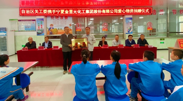 寧夏金昱元化工集團(tuán)股份有限公司向彭陽縣王洼鎮(zhèn)中學(xué)捐助10萬元,用于購置辦公設(shè)施、體育器材、生活用品等。