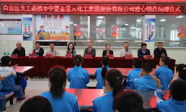 9月3日上午,寧夏金昱元化工集團(tuán)股份有限公司赴彭陽縣王洼鎮(zhèn)中學(xué)開展捐資助學(xué)活動。寧夏關(guān)心下一代工作委員會集金委主任、寧夏關(guān)心下一代基金會常務(wù)副理事長李作忠,寧夏關(guān)心下一代工作委員會集金委副主任、秘書長張國平;寧夏金昱元化工集團(tuán)股份有限公司黨委副書記、工會主席尚興,寧夏金昱元化工集團(tuán)股份有限公司固原基地工會主席、綜合管理部部長劉志江;彭陽縣縣委常委、宣傳部部長李雙美,彭陽縣王洼鎮(zhèn)黨委書記祁濤,彭陽縣教育體育工委專職副書記韓廣新,王洼鎮(zhèn)中學(xué)校長虎維林等參加活動。