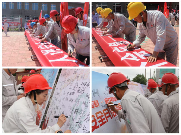 大家在簽字版上簽下自己的姓名,鄭重承諾,將牢固樹立安全意識(shí),以身作則、嚴(yán)以律己,嚴(yán)格規(guī)范安全行為,防止各類事故發(fā)生,共同維護(hù)公司安全穩(wěn)定局面。