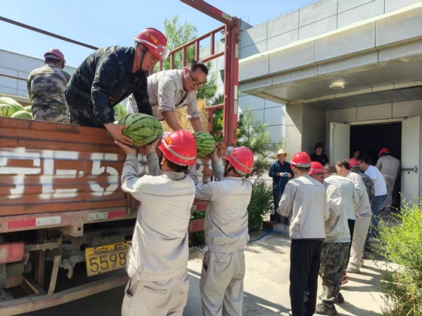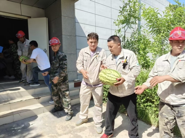 活動期間,固原基地工會深入現(xiàn)場,將防暑西瓜分發(fā)到職工手中,為身處高溫工作環(huán)境的職工送去陣陣清涼。同時對奮戰(zhàn)在一線的職工致以親切問候,并囑咐大家做好高溫防護,鼓勵大家在繁忙的工作中積極發(fā)揮勞模精神、工匠精神,為高溫季節(jié)安全生產(chǎn)保駕護航。
